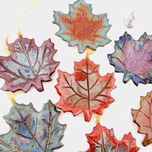 Ceramic Maple Leaf Ornament, 3″ Pottery Holiday Decor, Nature Christmas Decoration, Autumn Fall, Secret Santa Gift Exchange, USA Handmade